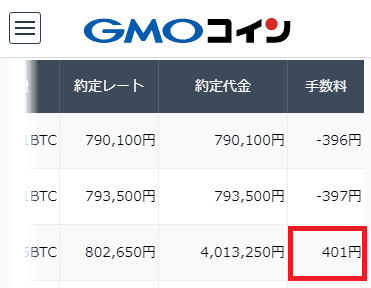 ただし、GMOコインが提示する価格での売買となるため、買値と売値の差(スプレッド)が取引手数料として発生します。