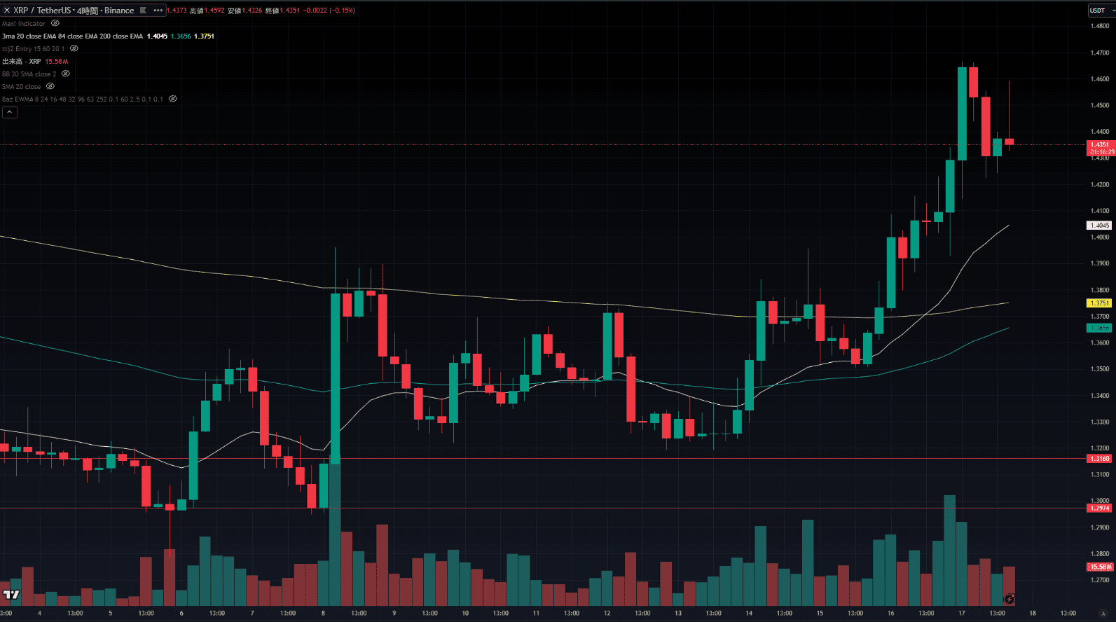 XRP/USDTの4時間足チャート