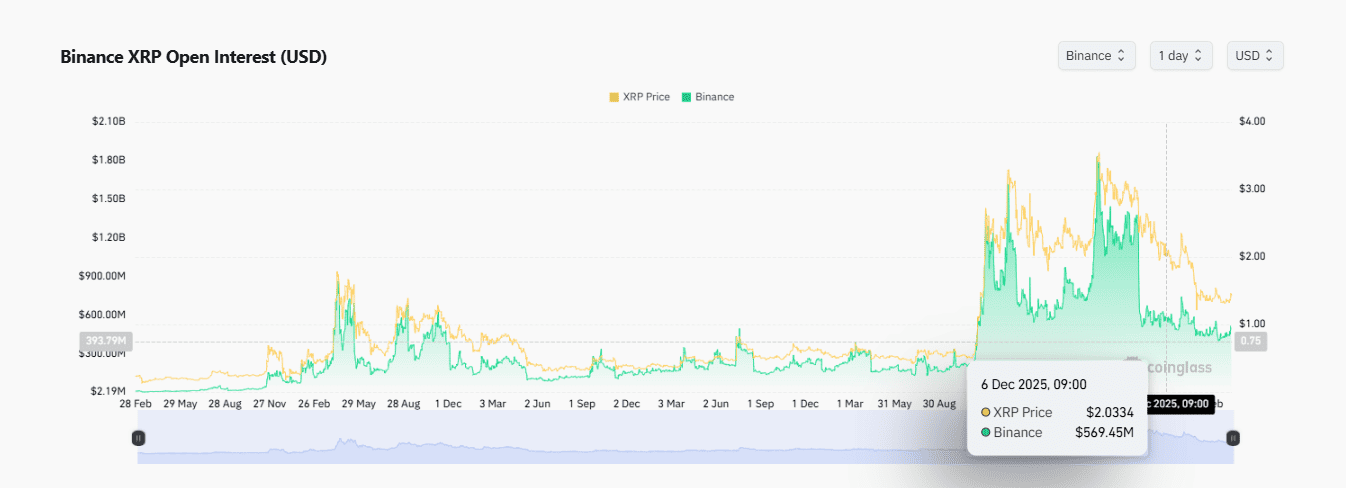 リップルのデリバティブ市場におけるOI(未決済建玉)は、底打ちから若干反発し、増加傾向にあります。