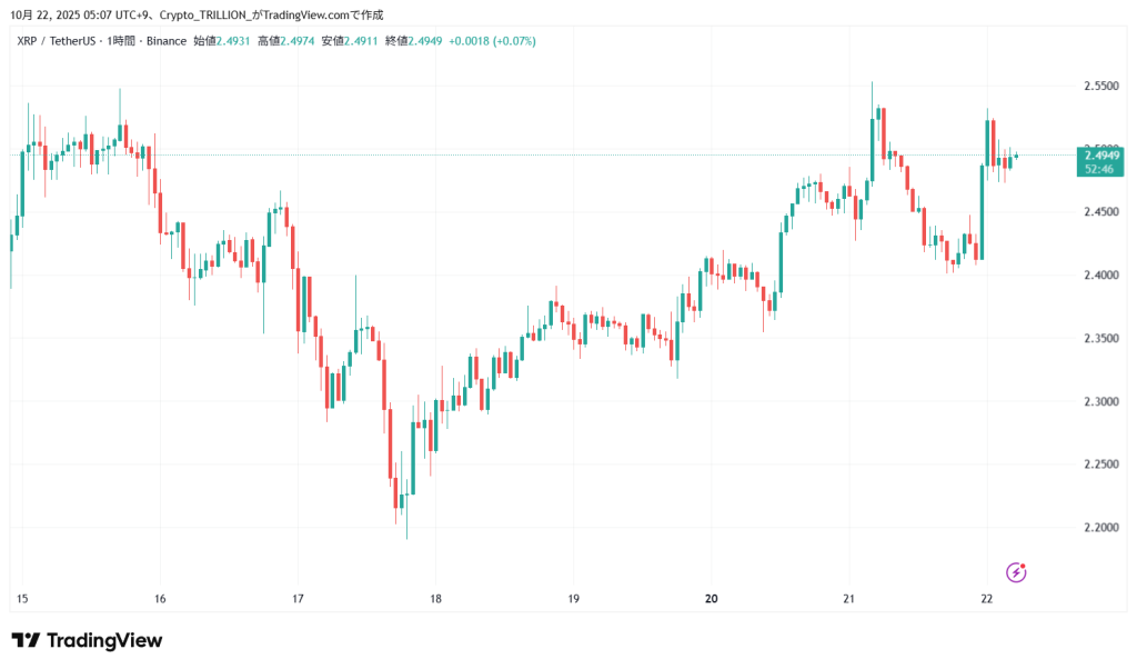 (参考 TradingViewのXRPUSDTチャート 1時間足)